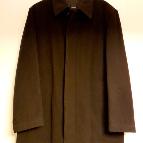 Ajattoman tyylikäs, korkealaatuinen miesten Hugo Boss -merkkinen musta villakangastakki. Siisti ja hyvin pidetty.