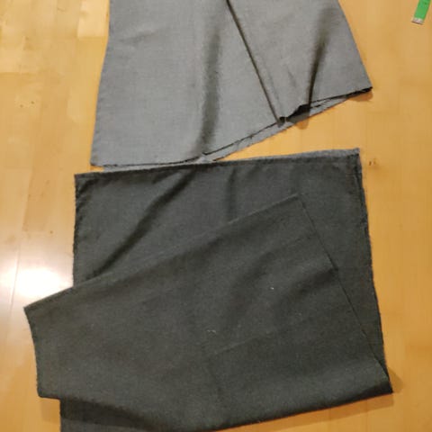 Neljä kpl, viittamaisen takin leikatut etukappaleet (2) sekä 2 kpl takaosaa varten, joita ei ole muotoon leikattu. Palat on isoja, joten niistä on mahdollista tehdä vaikka jakku/bleiseri. Leikattujen etukappaleiden koko suunnilleen leveimmältä kohdalta 90 cm, korkeus noin 130. Helmasta pyöristetty. Leikkaamattomat palat leveys noin 65 korkeus noin 115 cm. Nouto Tesomalta sovitusti tai postitus mieluiten ToriDiilillä.