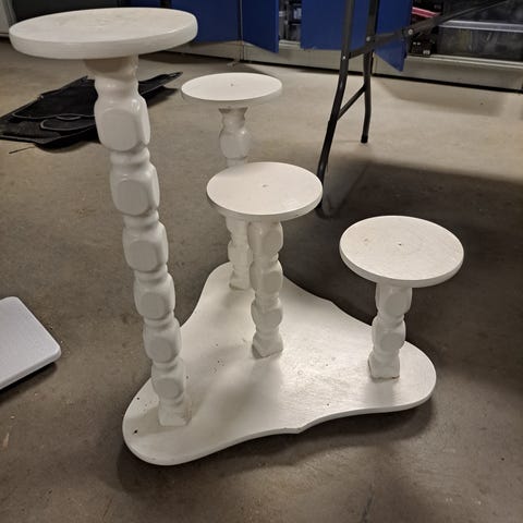 Myydään hyväkuntoinen kukkateline puulaatikolla. Lev. 50 cm, jalustan korkeus 26 cm, laatikko 13 c x 13 cm. Kokonaiskorkeus 40 cm.