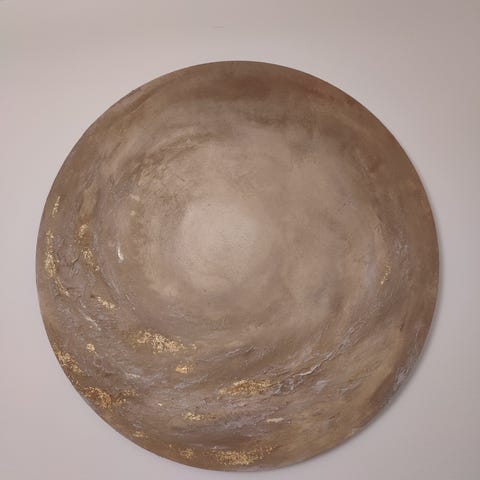Vaaleanpunainen pyöreätaulu ilman kehystä.