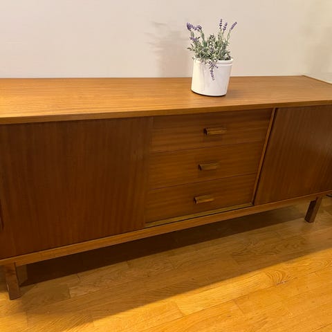 Optimus-sarjan on Vilkalle suunnitellut Pertti Salmi 60-luvulla. Kaappi ja avohylly, molemmat hyllyt saa irti. Senkki on hyvässä kunnossa, ei oikeastaan mitään mainittavia vikoja.