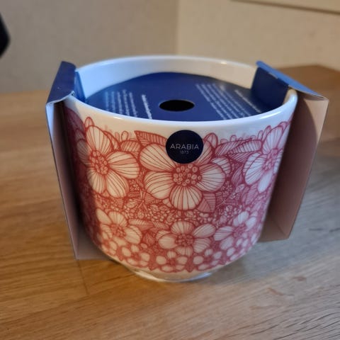 Arabian Huvila ruukku. Koko 10 x 12 cm. On paketissaan. Väri vaalean punainen. Minulla myynnissä näitä kaksi kappaletta