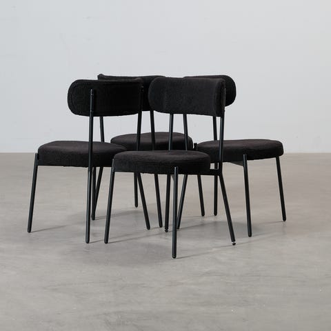 Allison tuoli on elegantti lisä kodin ruokailutilaan. Tuolissa on musta bouclé-verhoilu ja metallinen runko.