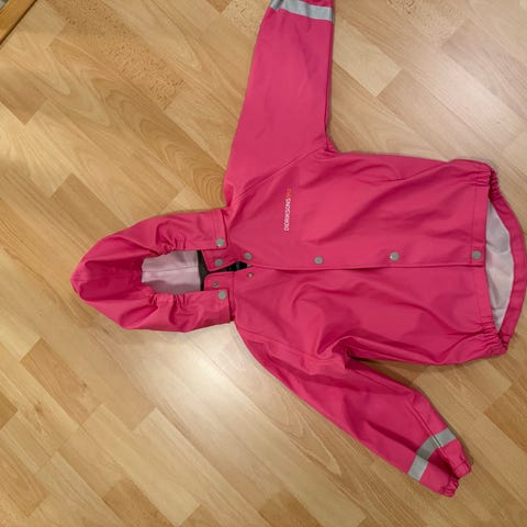 Didriksonin vihreä sadekestävä takki. Löytyy pieniä käytönjälkijä.