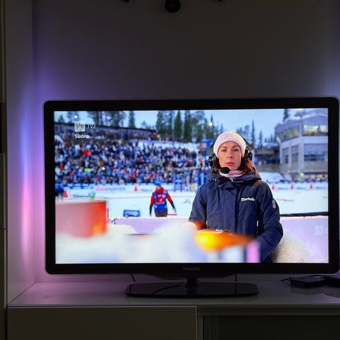 Toimii moitteetta, nykyaikainen älytelevisio q-led paneelilla. Kaapeli/antenni-teräväpiirto yhteensopiva. Vain nouto