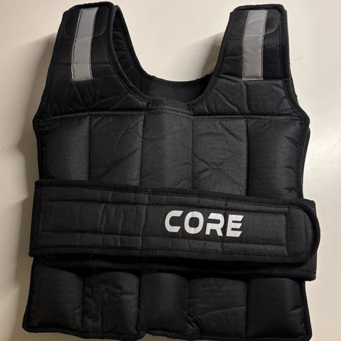 Kunto on kohtalainen, mutta käytön jälkiä on havaittavissa. Kangas on hieman kulunut ja tarranauhoissa on pientä nukkaantumista. Yhden tarranauhan kiinnityskohta hieman avautunut ompeluista. Painotaskut ovat ehjät, mutta kaikkiin taskuihin ei ole painoja (sisältää 3 isompaa painpussia ja 6 pienempää painopussia)