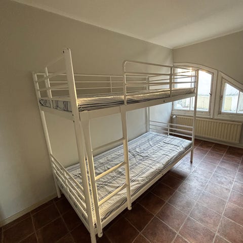 IKEA Kerrossänky lasten huonekalut, suunniteltu tilaa säästävään nukkumiseen kahdelle lapselle. Vankka rakenne ja portailla varustettu pääsy yläpetiin. Sopii lastenhuoneeseen, materiaali ja väri vastaavat IKEA:n lasten kalusteiden standardeja.