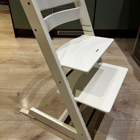 Myydään ylimääräiseksi jäänyt valkoiseksi maalattu Stokke Tripp Trapp tuoli. Alunperin puun värinen mutta viime kesänä maalattu ja sen jälkeen vain vauvaosan kanssa käytetty (myynnissä myös).