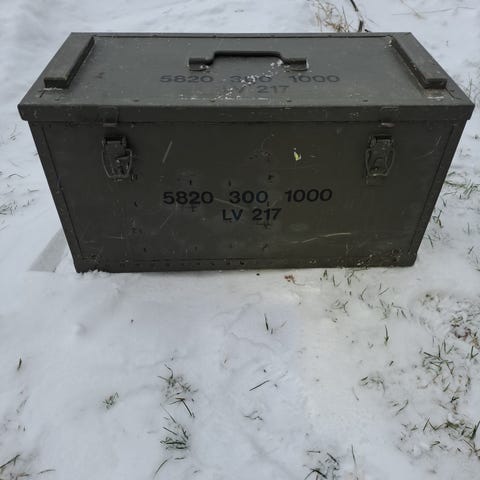 Myydään Suomen Ilmavoimien käytössä 60-luvulla ollut kaiutin. Kyseessä on käsittääkseni armeijan kenttäradion kaiutin, ja johdossa kiinni olevan pahvikortin mukaan se on mallia STR9X ja huollettu viimeksi kesäkuussa 1969. Kaiuttimessa hieman DIN / XLR -näköinen pyöreä metallinen liitäntä kaapelin päässä, liittimessä kuusi metallista nastaa ympyrän muodossa. Laitetta ei ole päästy testaamaan, myydään näillä tiedoilla siinä kunnossa kuin on myyntihetkellä ilman valitusoikeutta. Ulkoisesti jämerä, kotelo paksua peltiä, kaiutin ritilä metallia, laitteen sivussa jämäkästi liikkuva vipukytkin. sota armeijan vintage retro vanha sotilas esine tavaraa tavaroita ylijäämä armeijanylijäämätavara tavaraa ylijäämää ylijäämätavaraa varasto varuste army finland militaria 60-luku 60-luvun sa int vanha vihreä sotilas kaijutin kaiuttimet kaijuttimet kenttäradio antiikki matkaradio matka kannettava radiovastaanotin militaria autoradio