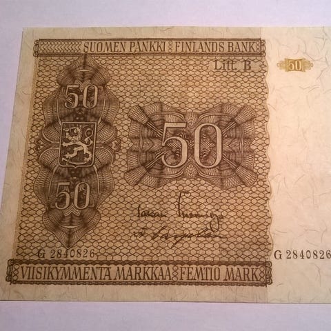 Hyväkuntoinen ehjä siisti käytetty seteli