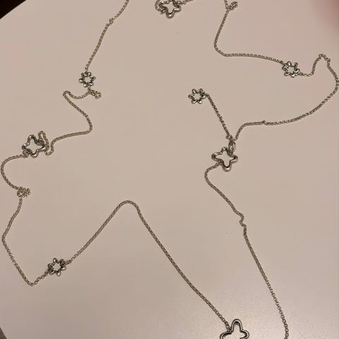Kalevalan ilona kaulakoru hopeisena. Pituus 140cm