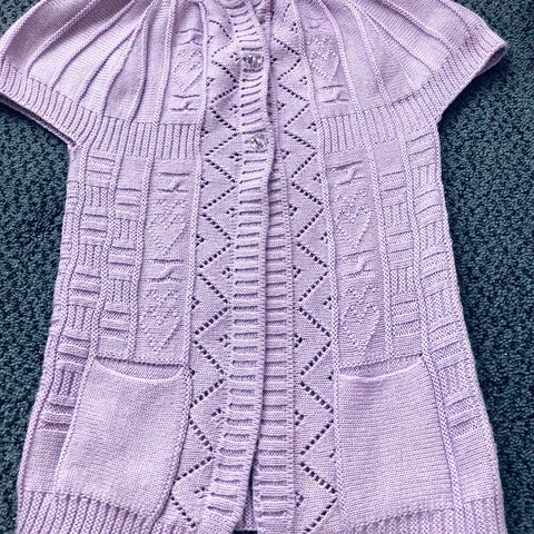 Käytetty yhdellä tytöllä. Ehjä, mutta toki pehmeä lanka nyppääntyy hieman.