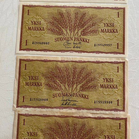 2 kpl 1 markka-setelit, vuodeltaan 1963