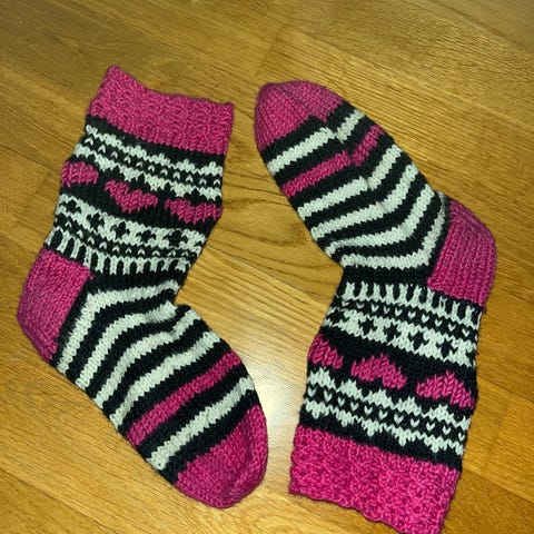 Pinkit käsinneulotut villatöppöset, uudet. Koko 37.
