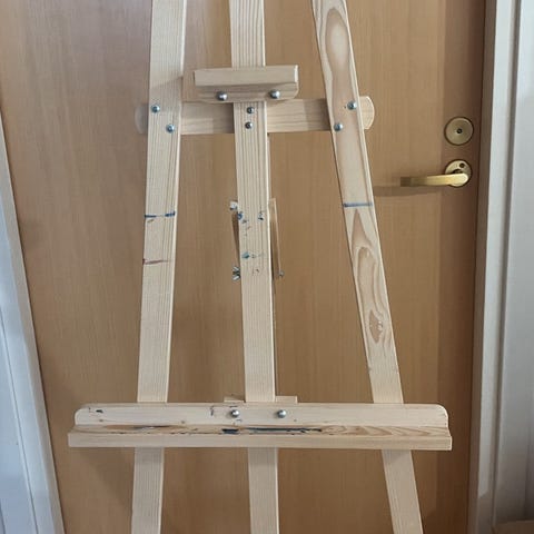 Käyttämätön puinen maalausteline.