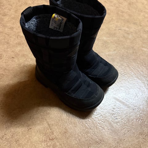 Kuoma lasten talvikengät, koko 29, unisex. Kengät on suunniteltu tarjoamaan lämpöä ja suojaa kylmissä olosuhteissa. Mustat värit ja kestävät materiaalit tekevät kengistä sopivat monenlaiseen käyttöön.