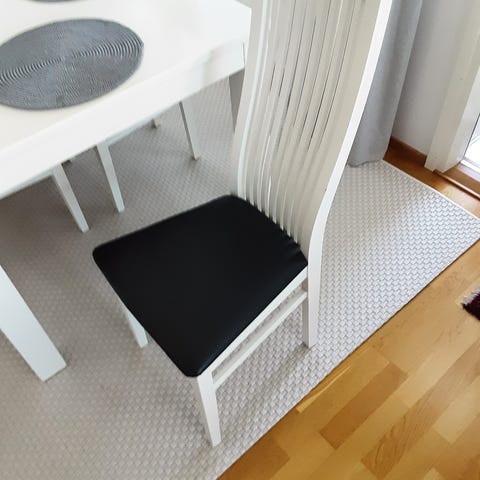 Istuin leveys 41/35 cm, istuin syvyys ~40 cm, istuin korkeus 48 cm, selkänojan korkeus 94 cm.
