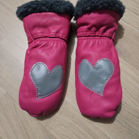 Lämpimät nahkahanskat karvavuorella 4-6 vuotiaalle.