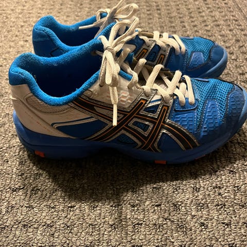Todella hyväkuntoiset sisäpelikengät, Asics-merkkiset. Koko 35, hetken olleet käytössä koululiikunnassa.