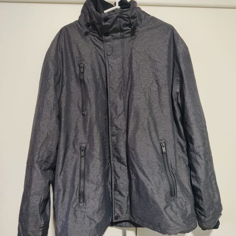 Takki XL ja housut XXL. Sopivat 180cm pituiselle.