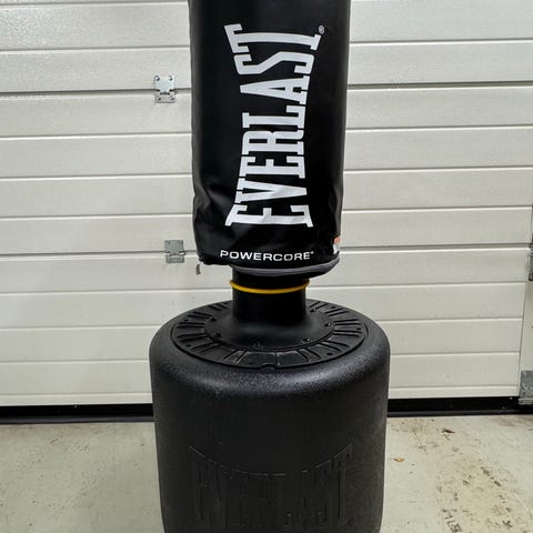 Myydään laadukas ja tukeva Everlast Powercore -nyrkkeilysäkki. Sopii erinomaisesti kotiin, autotalliin tai kuntosalille. Ei vaadi katto- tai seinäkiinnitystä. Pituus säädettävissä 137-165cm. Alaosa täytetään vedellä taikka hiekalla ym.