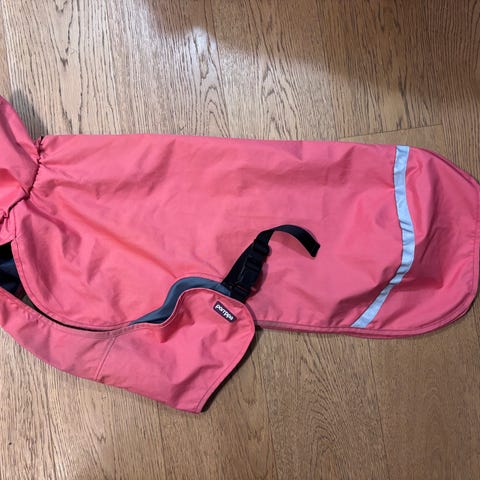 Pinkki pompan sadetakki koiralle 45cm koko. Ihana pehmeä ja kevyt vuori.