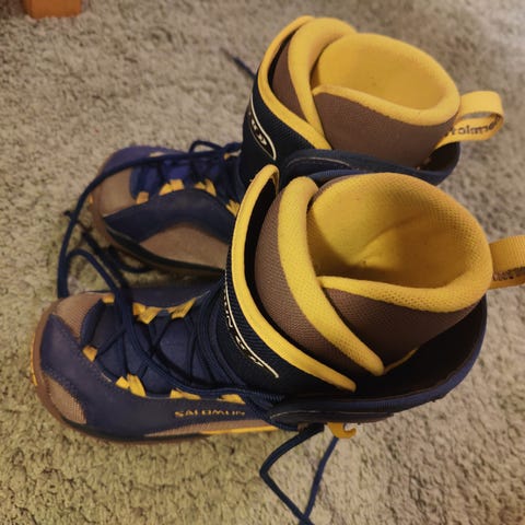 Myydään paljon käytetty lumilauta ja monot jotka ovat kokoa 33. Hyvä harjoitus lauta. Vasemmalla puolella käytetty nippusidettä josta erikseen kuva.