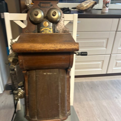 Kohtalainen kunto antiikkipuhelimella. Kuuloke mennyt rikki/johto puuttuu.