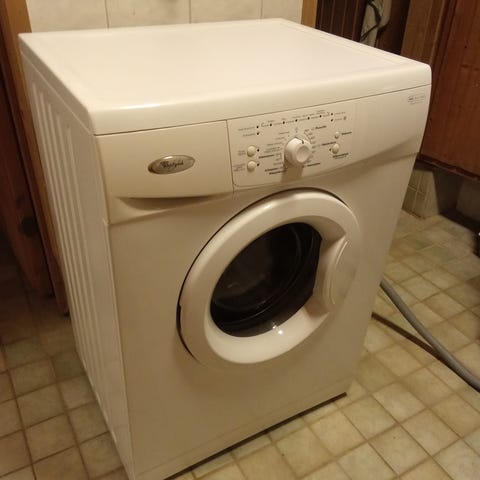 Whirlpool päältä täytettävä pesukone. Pesukoneessa on yläluukku ja ohjauspaneeli laitteen yläosassa. Sopii pyykinpesuun kotitalouksissa.