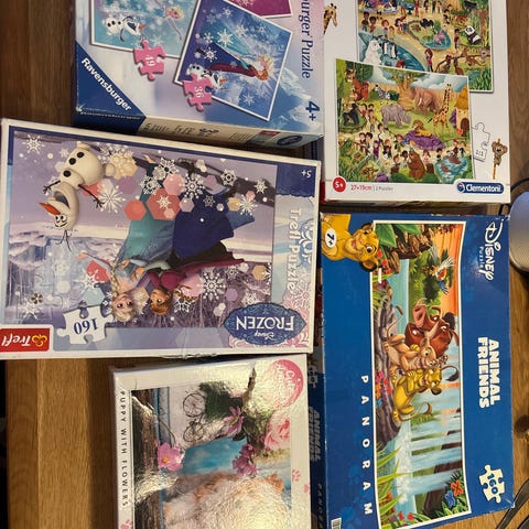 6 palapeliä + yksi korttipeli. Kaikki palaset tallella. Ei eläintalous.