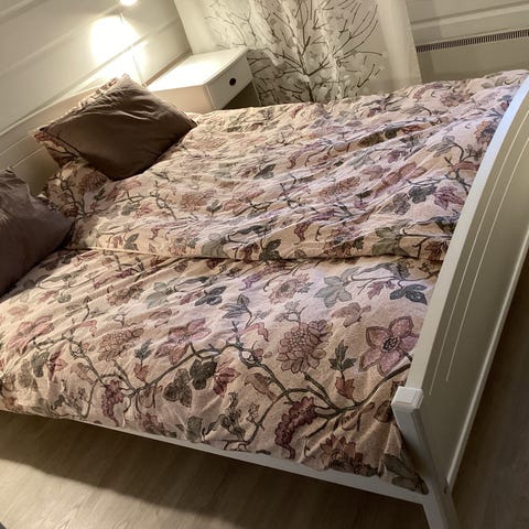 Puukehikkoinen sänky, joustinpatjat ja petari, jonka pesu jää sinulle.