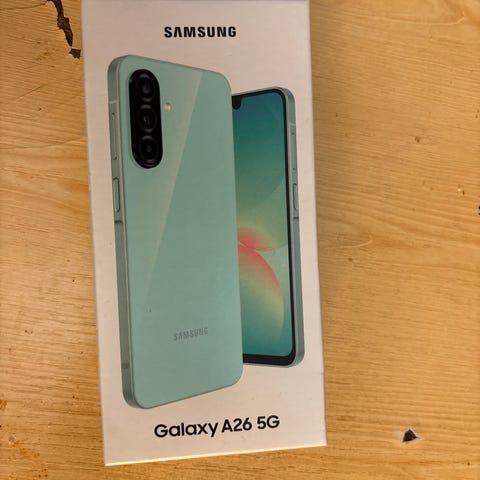 Samsung Galaxy A -sarja Galaxy A26 5G älypuhelin, jossa on 128 GB tallennustilaa. Puhelin on varustettu 5G-yhteydellä ja modernilla näytöllä. Väri on vaaleanvihreä.