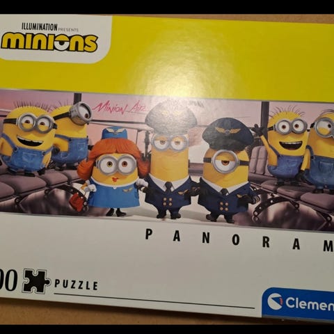 Clementoni Despicable Me 3 palapeli, jossa on 1000 palaa. Palapelin koko on 69 x 50 cm. Kuvassa on useita Minions-hahmoja keltaisella taustalla.