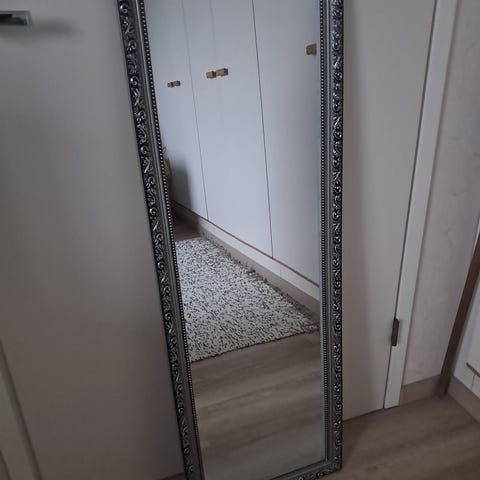 Luonnonvalkoinen, metallinen peili, kaunis koristeellinen. Ostettu aikoinaan sistustus Aadasta Lielahdesta. Ollut käyttämättömänä varastossa.