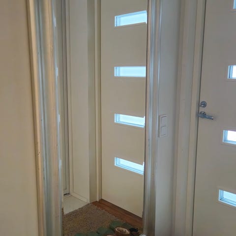 Luonnonvalkoinen, metallinen peili, kaunis koristeellinen. Korkeus 92 cm, leveys 60 cm. Ostettu aikoinaan sistustus Aadasta Lielahdesta. Ollut käyttämättömänä varastossa.