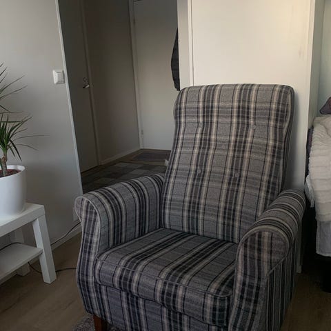 Musta samettinen nojatuoli.
