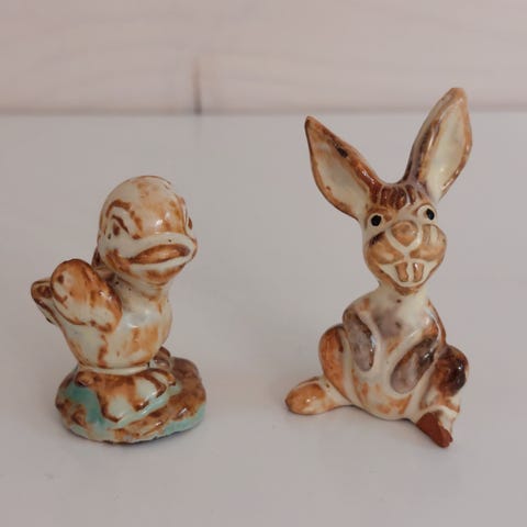 Hyväkuntoinen ja ehjä Hallmarkin Marty Links -keramiikkafiguuri tai -lamppu, jossa on tyttö ja pupu.