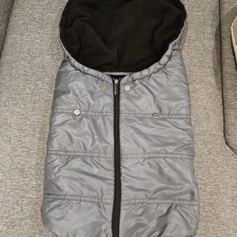 Carena-merkkinen lastenvaunuun sopiva makuupussi, valkoinen väri. Musta fleecevuori. Viisipistekiinnitys.