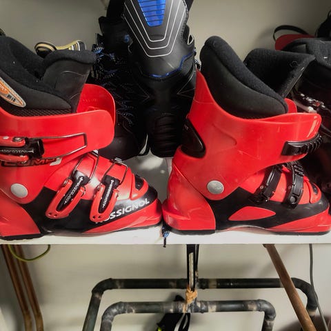Rossignolin laskettelumonot 23,5cm. Arviolta 35 kokoiseen jalkaan. Käytönjälkiä näkyy mutta hyvät, tukevat ja kaikki lukot ehjät. Koiratalous.