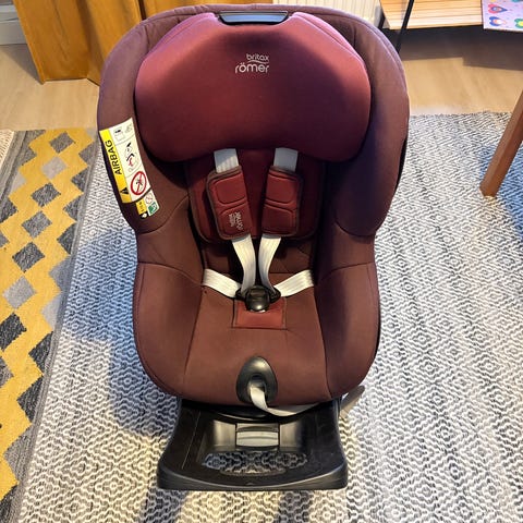 Hyvä kuntoinen ja hyvin pidetty turva istuin. Turvavöissä hieman tahroja. Päälliset juuri konepesty. Penkin takaosaan tulevat vyöt (alavyöt) pesty käsin.