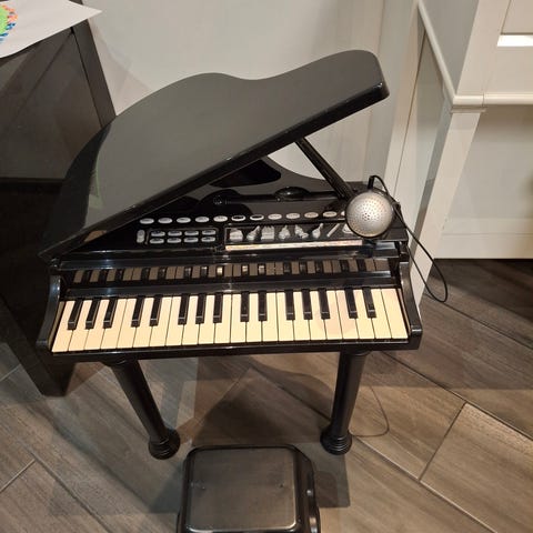 Myydään lasten toimiva leikkipiano. Mukana toimiva mikrofoni. Kannen pidike puuttuu, mutta se on helppo korvata eli ei ole haitannut käyttöä. Nouto Tampere, Hervanta