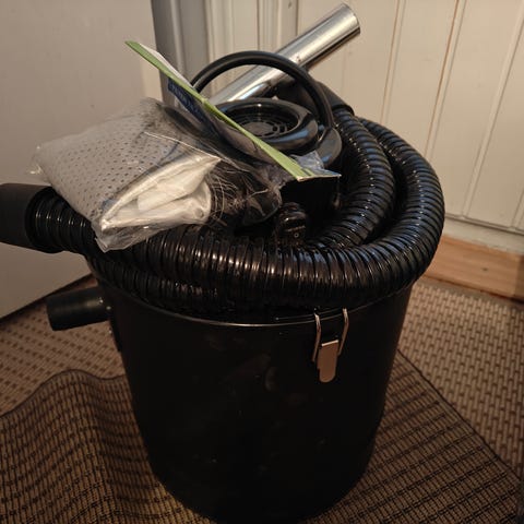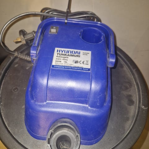 Rustasta ostettu tuhkaimuri. Meidän käyttöön sittenkin liian pieni. Kaksi kertaa käytetty