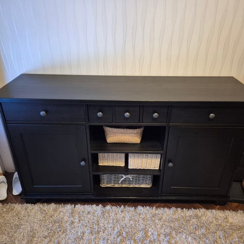 Ikean musta Hemnes lipasto. Kunto hyvä, laatikot toimii. Naarmuja ja käytönjälkiä löytyy (kuvassa).