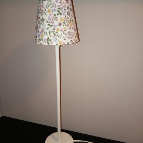 Pöytävalaisin, jossa harmaa mattapintainen varjostin ja metallinen varsi.