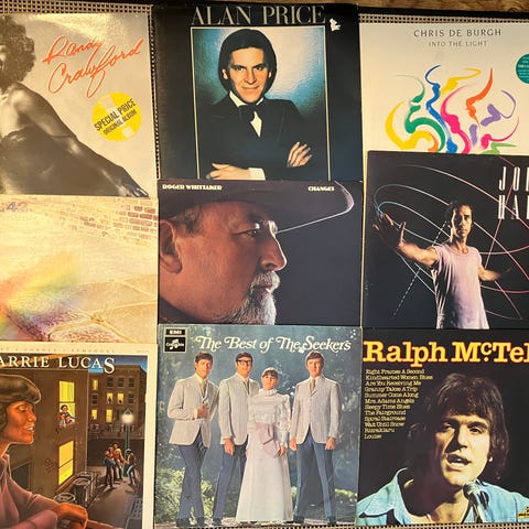 Paketti vinyyleitä oldies, soundtrack, eri esittäjiä