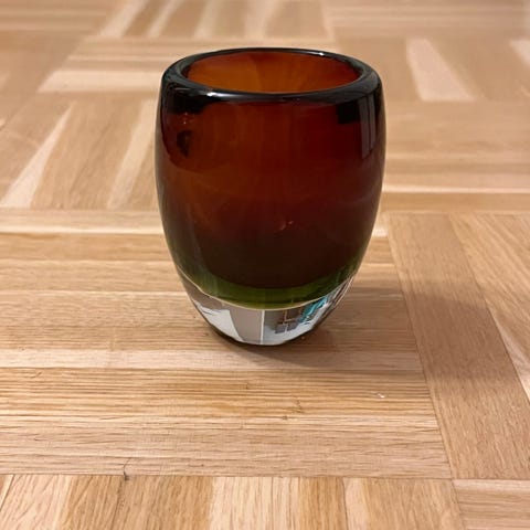 Signeerattu (Tapio Wirkkala Iittala -58) viivahiottu taidelasi. Korkeus 11,5 cm. Ehjä. Toridiili.