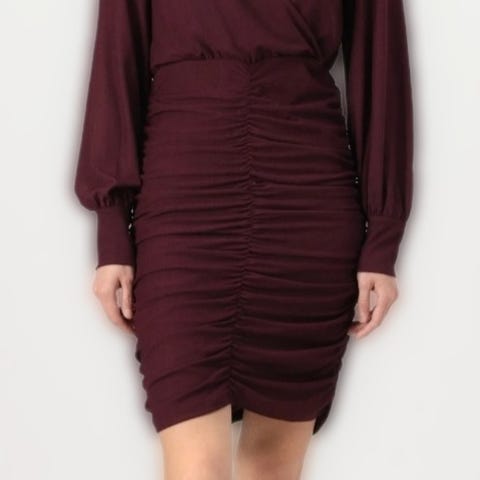 Vyötäröllä joustava kuminauha. Alaosa enemmän vartalonmyötäistä mallia.