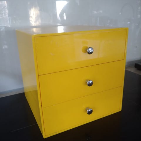 PALASET pieni laatikosto .Käytetty pikkuvikainen n. 17 x 17 x 17 cm ja Palaset kirjerenki