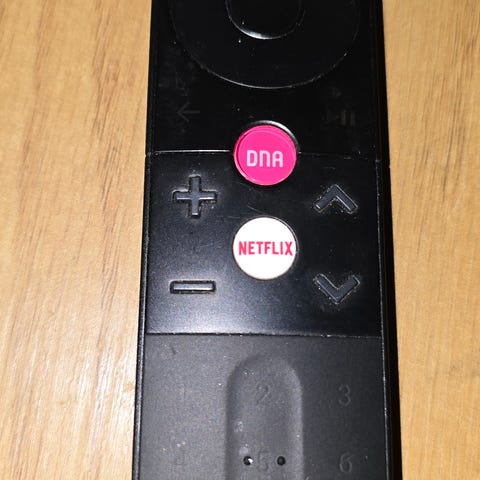 Google DNA -kaukosäädin, musta, sisältää DNA-, Netflix-painikkeet ja numeronäppäimistön. Sopii DNA-televisiojärjestelmään. Ladataan johdolla.