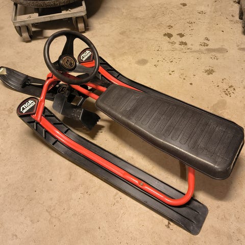 Vanha hyväkuntoinen Stiga Super GT -rattikelkka, musta